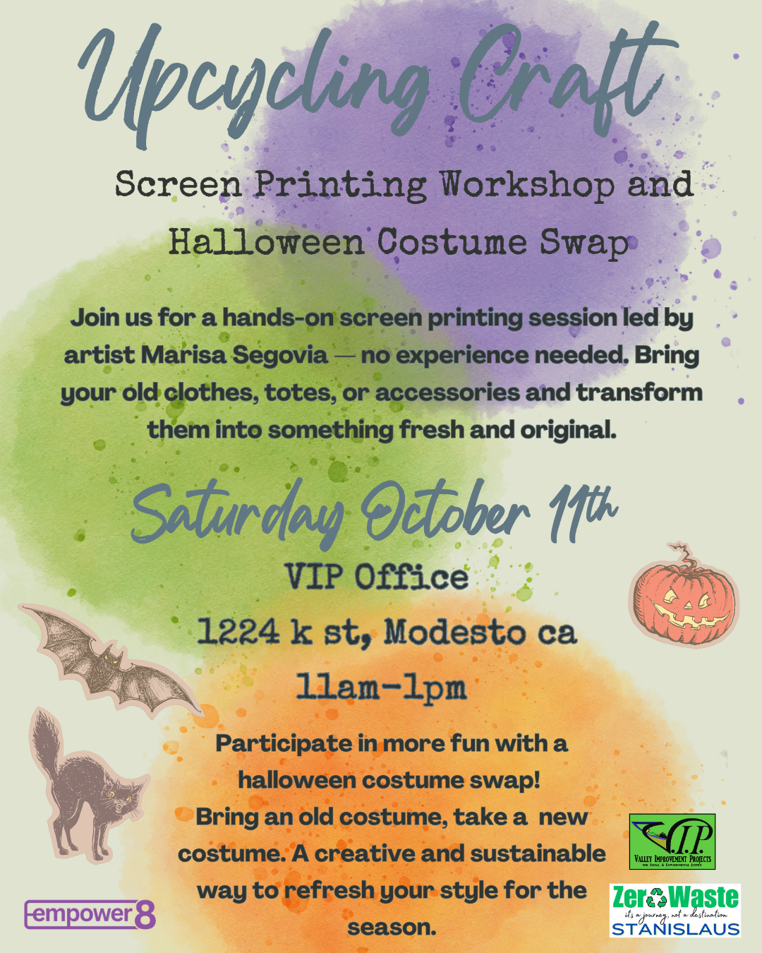 Upcycling Craft: Screen Printing Saturday, October 11, 2025 11:00 AM 1:00 PM Valley Improvement Project 1224 K st modesto Modesto, CA, 95354 United States (map) Google Calendar ICS REGISTER HERE